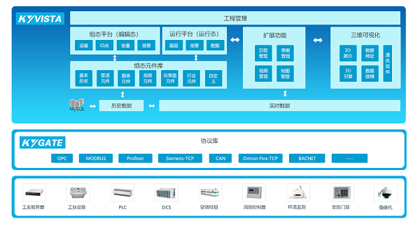 KyVista工业企业企业园园互连网vr全景可视化数据统计显示模块化手机平台针对性工业企业企业园园的领域各式核心协义如Modbus (Serial Line and TCP)、OPC XML-DA、OPC UA 、PROFIBUS、PROFINET等,来数据统计显示爬取及转化成,构建工业企业企业园园数据统计显示的爬取、治理、贮存、qq远程选配与视频监控、探讨及图表化表现,并搞出智力探讨、预警信息,智能化鼓励各式工业企业企业园园用途。