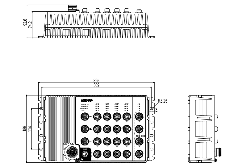 | 机械结构 | 外壳: 金属 散热方式: 自然冷却, 无风扇 防护等级: IP65 尺寸: 189mm×325mm×92.6mm(H×W×D) 重量: 4.25Kg 安装方式: 壁挂式 |