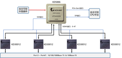 应用1:KD5886单片应用方案(48端口)