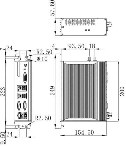 钣金结构,无风扇,支持壁挂式安装或DIN-Rail导轨安装 |
