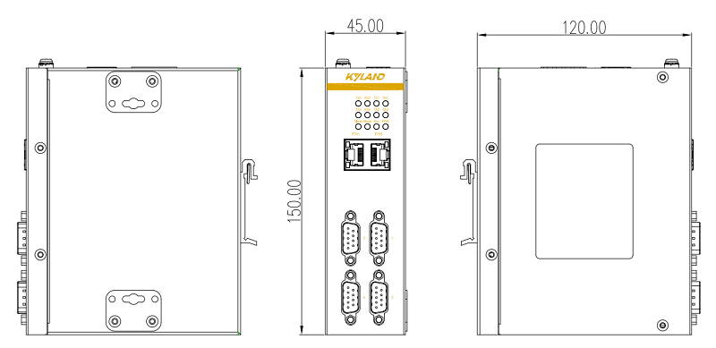 | 机械结构 | 外壳:金属材质 产品尺寸: KGW3204A:45×150×120mm(W×H×D) KGW3408A:79×150×120mm(W×H×D) 散热方式:自然冷却,无风扇 防护等级:IP40 安装方式:壁挂,导轨 |