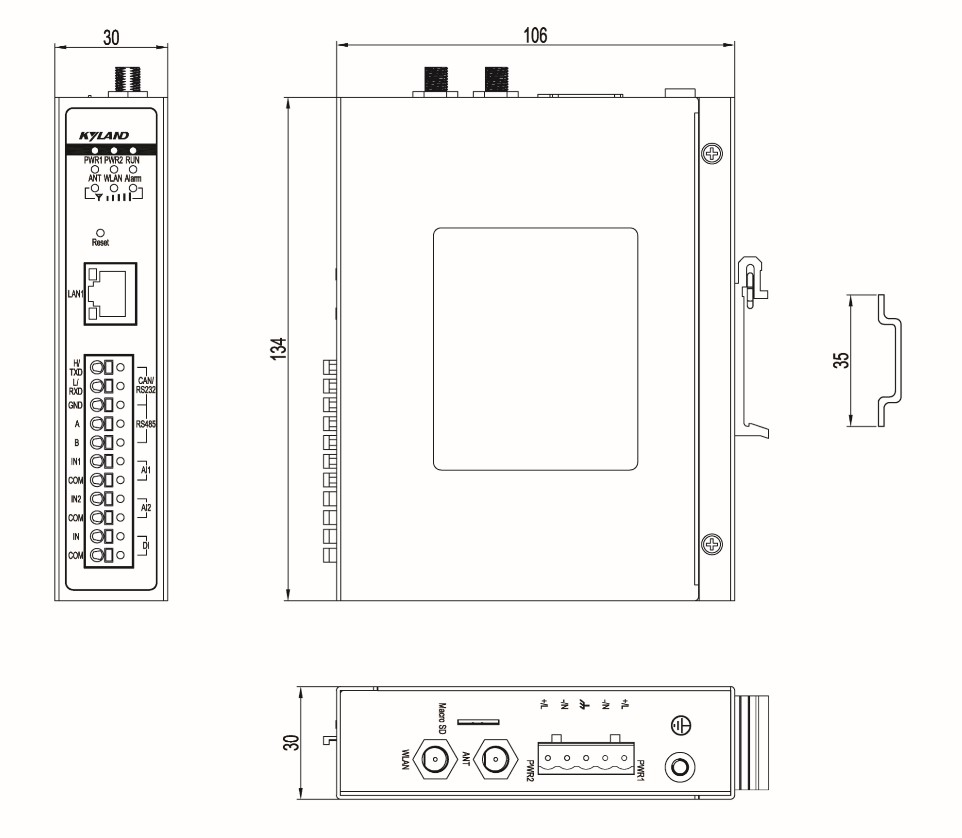| 指示灯 | 前面板指示灯 运行指示灯:Run 告警指示灯:Alarm 电源指示灯:PWR1,PWR2 网络:ACT/LINK 无线工作状态指示灯:ANT,信号强弱指示灯 |