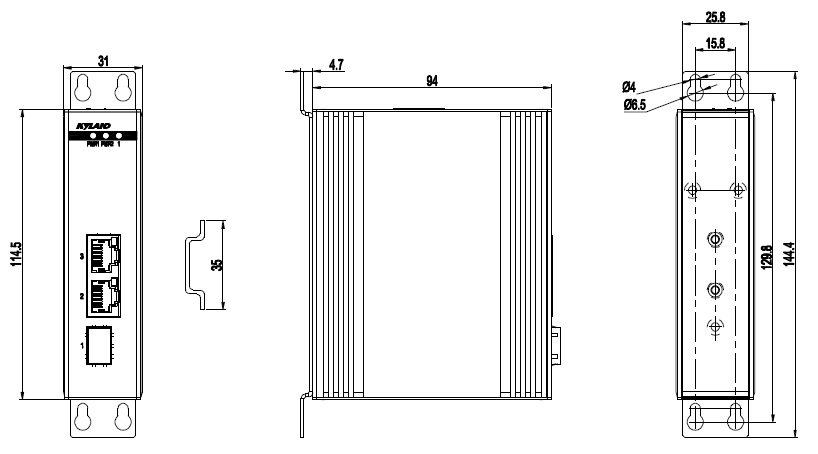 | KOM300A-1SFP2T-LV-LV | 1×100Base-X SFP接口方式 2×10/100Base-T(X) RJ45电口 | 12-48VDC/18-30VAC,冗余输入 | 31mm×114.5mm×94mm |