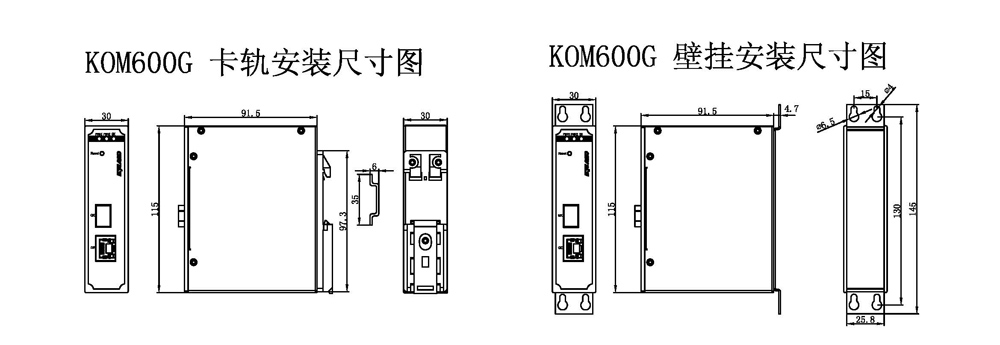 | 机械结构 | 外壳 金属材质 散热方式 自然冷却,无风扇 防护等级 IP40 尺寸 30mm×115mm×91.5mm(W×H×D) 重量 0.46Kg 安装方式 DIN卡轨式或壁挂式 |