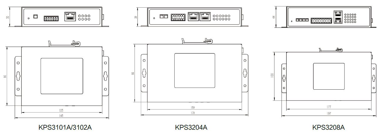 | 物理特性 | 外壳 金属 尺寸(WxHxD) KPS3101A:30mmx123mmx90mm KPS3102A:30mmx123mmx90mm KPS3204A:30mmx150mmx92mm KPS3208A:44mmx177mmx100mm 包装尺寸:250mmx200mmx70mm |