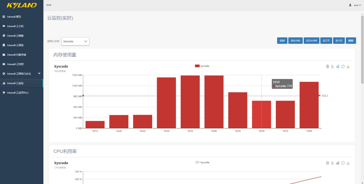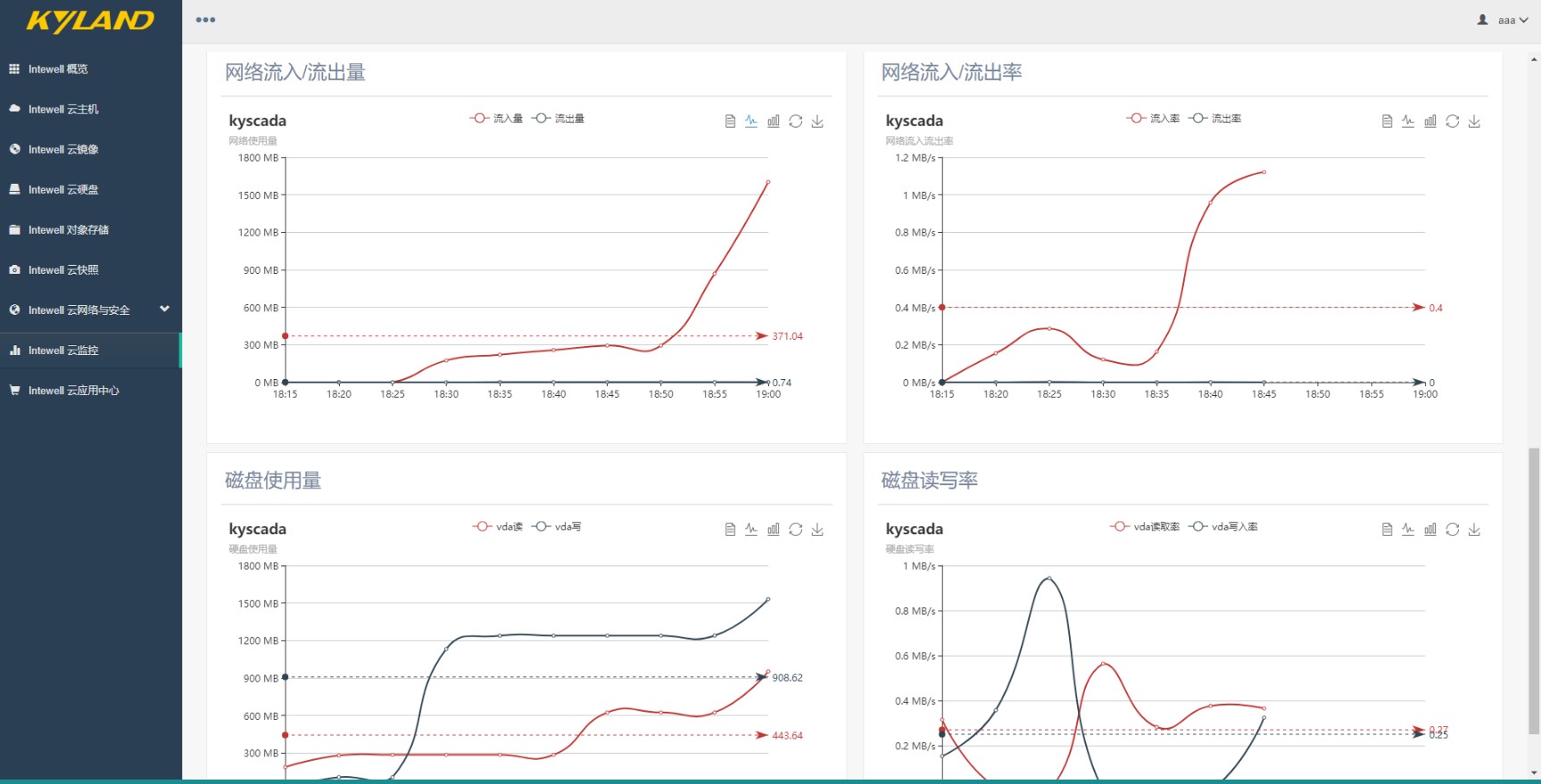 | 云监控管理 | 支持对云主机CPU、内存、磁盘、网络的监控。 支持对应用资源的监控及动态扩展 支持对应用特有的业务进行监控(应用自定义) 支持对应用的编排:单个应用启、停和多个应用的编排 ![]() ![]() |