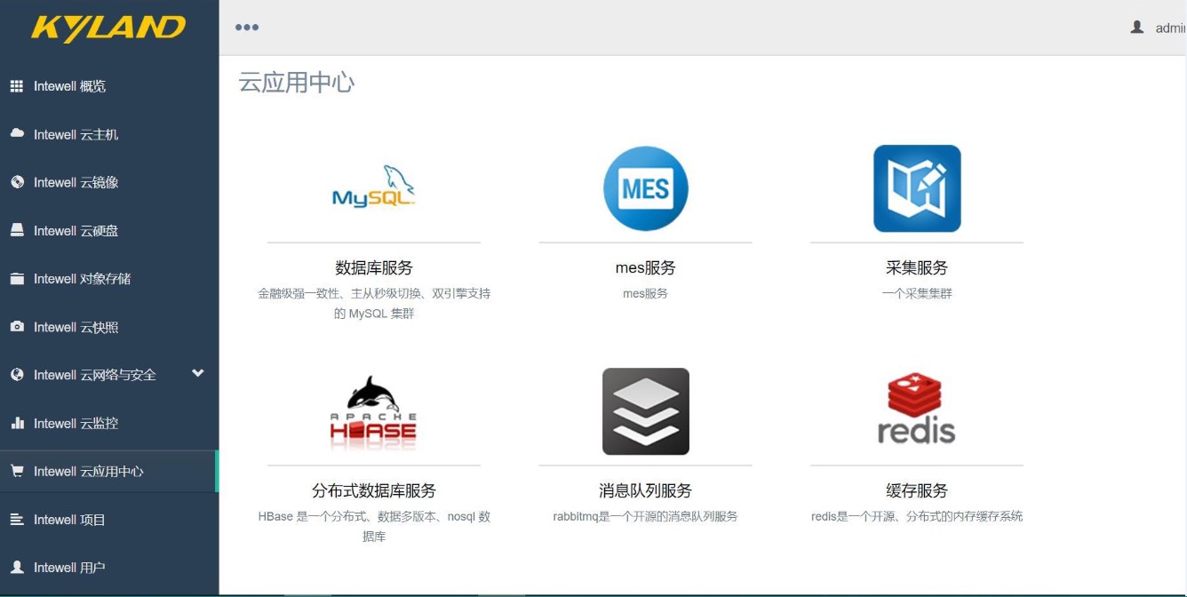 | 云应用中心 (可选) | 支持中间件及应用在云应用中心统一展示 支持中间件及应用一键式部署:用户只需一键点击应用,即可获取相应资源,直接部署在云平台中供使用。 应用包括: 支持关系型数据库mysql 5.7,支持数据库集群功能。 支持文档数据库mongdodb, 支持应用用户统一权限管理 支持ftp文件传输应用:http访问方式 支持列式数据库HBase 支持 kafka 消息队列 支持 mqtt 消息队列 支持预装东土KyVista全景可视化组态软件 支持预装东土KyMOM制造执行系统 支持预装东土AHM资产健康管理 支持预装东土NMS综合网络管理 支持预装东土ICMS工业计算机管理系统 ![]() |