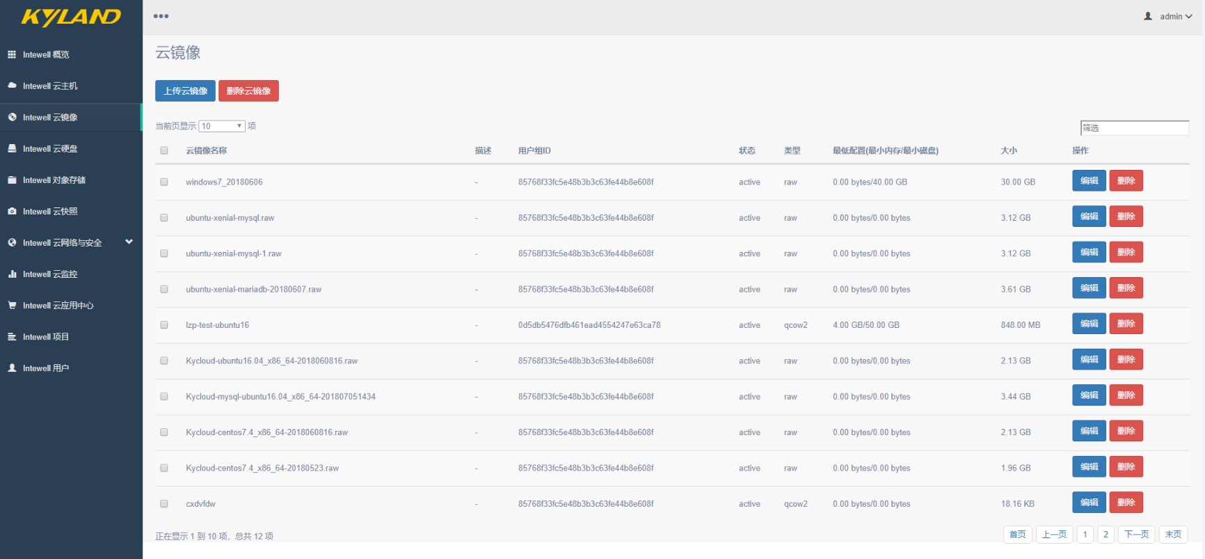 | 云镜像 | 支持创建、删除云镜像 支持基于镜像创建云主机、云硬盘 自带操作系统的云镜像:ubuntu 14.04 server、ubuntu 16.04 server、centos 6.6 server 、centos 7.4 server版 ![]() |