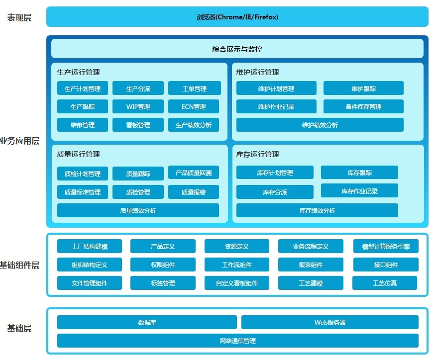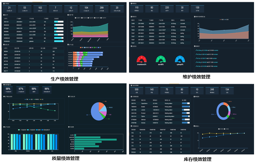 | 智能分析管理 | 支持自定义看板、报表管理 支持生产绩效分析 支持库存绩效分析 支持维护绩效分析 支持质量绩效分析 ![]() |