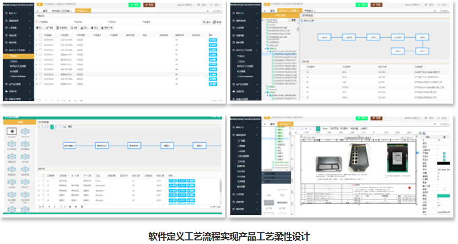 | 软件定义生产流程 | 支持工厂建模,实现自定义建模,可灵活定义名称、字段(包括名称、类型、大小、是否显示) 支持人员管理、设备管理、物料管理等资源定义 支持通过图形化拖拉方式定义生产流程,自动生成工作流 支持行业模板的生成及使用,如离散电子行业 ![]() |