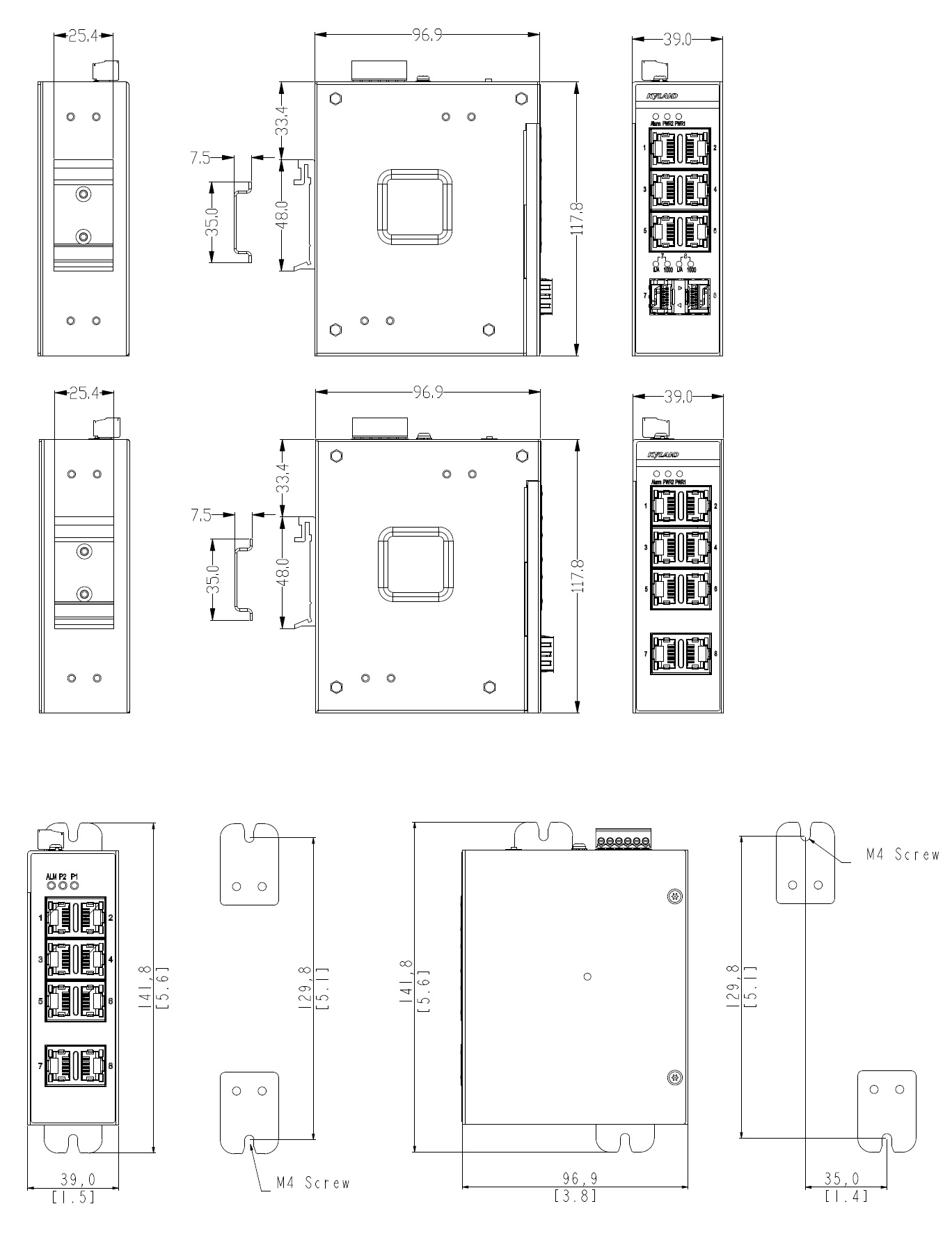 | 机械结构 | 外壳 金属材质 散热方式 自然冷却,无风扇 防护等级 IP30 尺寸 39mmx117.8mmx96.9mm(W×H×D) 重量 <0.5Kg 安装方式 DIN卡轨式或壁挂式 |