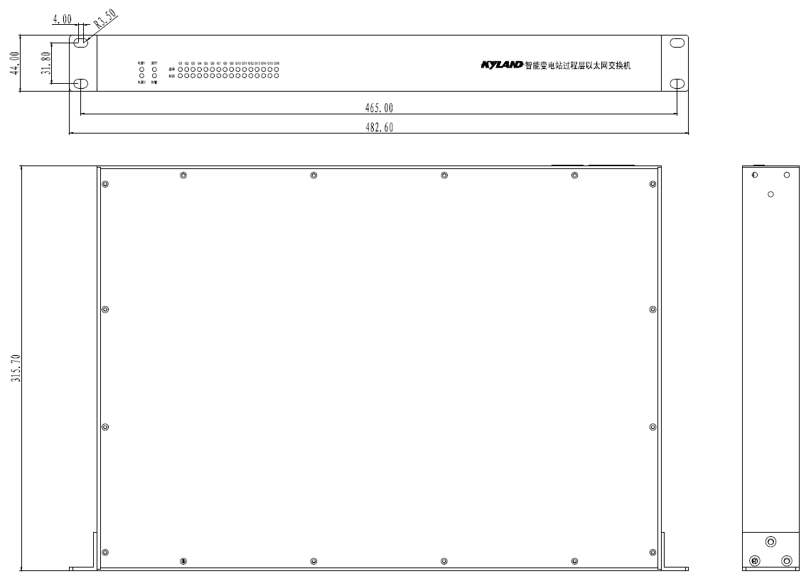| 管理与维护 | 支持Console,WEB 管理方式 支持SNMPv1/v2c/v3,可通过Kyvision 集中管理 支持IEC61850 MMS 建模管理 支持CSD 离线配置 支持文件传输及软件升级 支持IP/MAC冲突告警,失电告警,电源告警,温度告警,端口LinkDown告警,环告警,CPU利用率告警,内存利用率告警,端口流量告警,CRC及丢包率告警,配置变更告警 支持端口镜像 支持Syslog 支持LLDP 支持NTP,SNTP 支持延时累加 |